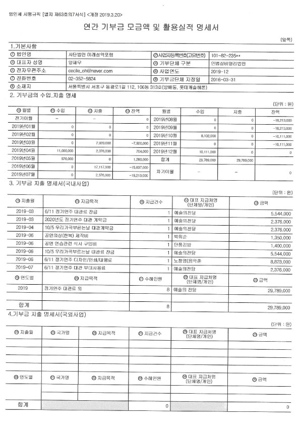 2019 기부금 모금액 활용실적 명세서 공개